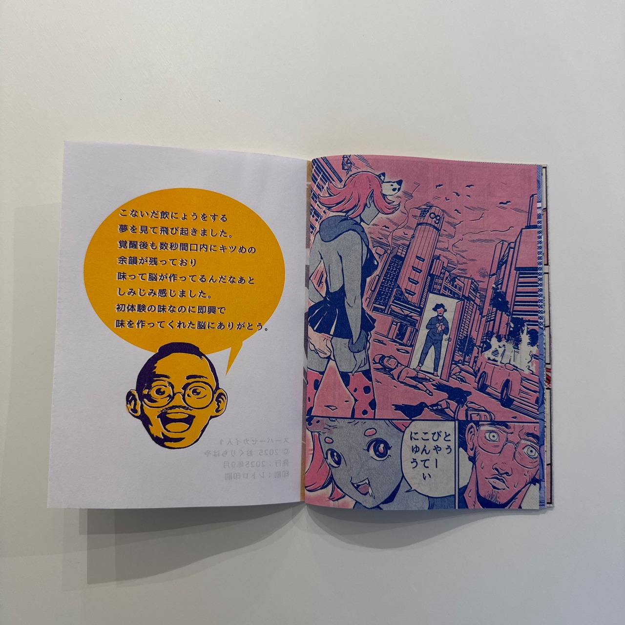 1年前、‘異世界漫画’として話題となった1、2巻が今回の展示のために、リソグラフ印刷の特別装丁で登場しました。